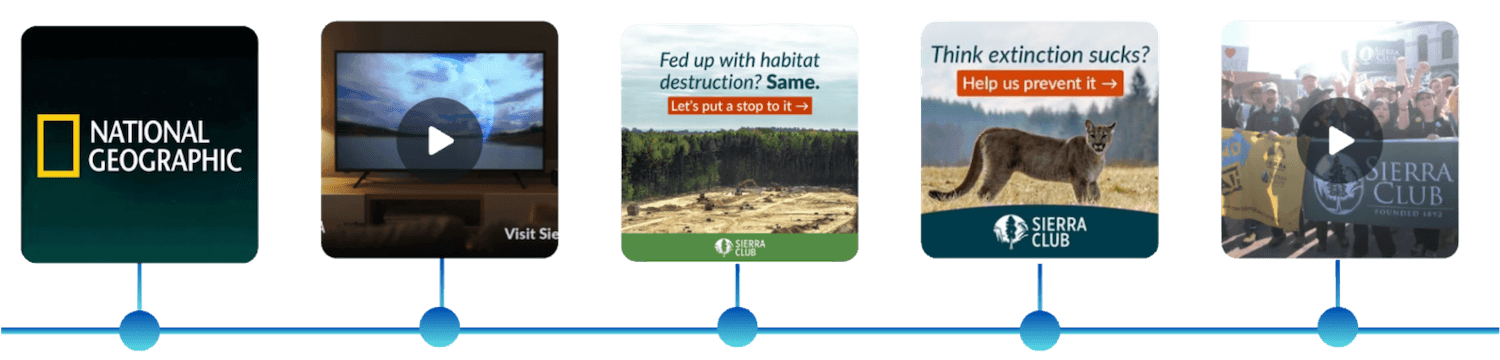 3. Curious Clickers: Often representing a donor’s first online interaction with Sierra Club, these highly engaged clickers and CTV viewers are at the top of the funnel. While they are not immediately conversion-ready, strong engagement with policy and advocacy content helps to fuel long-term donor pipeline by building awareness and trust. These clickers were very active with advocacy and policy creatives.